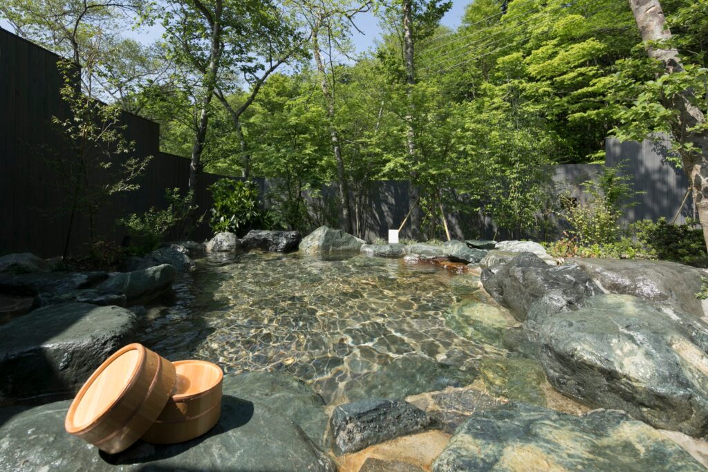 飲食を含むと1人あたりの実費換算で3,000〜5,000円分の価値が上乗せされる計算だ。「追加料金を気にせずゆっくりしたい」「カップルや友人と飲みながら温泉に入りたい」という人にはコスパ最高の選択肢になる。スタイリッシュな空間デザインも人気で、インスタ映えを意識した若い層にもよく選ばれている宿だ。
